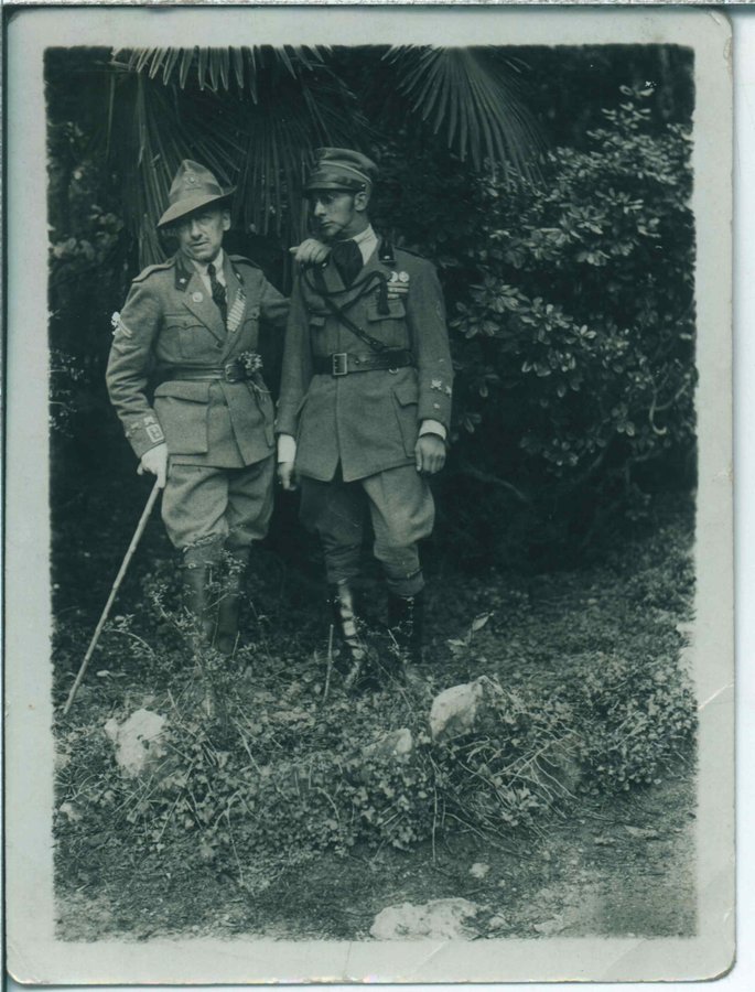 Fotografia di Gabriele D'Annunzio e Rossi Elia Passavanti in divisa militare