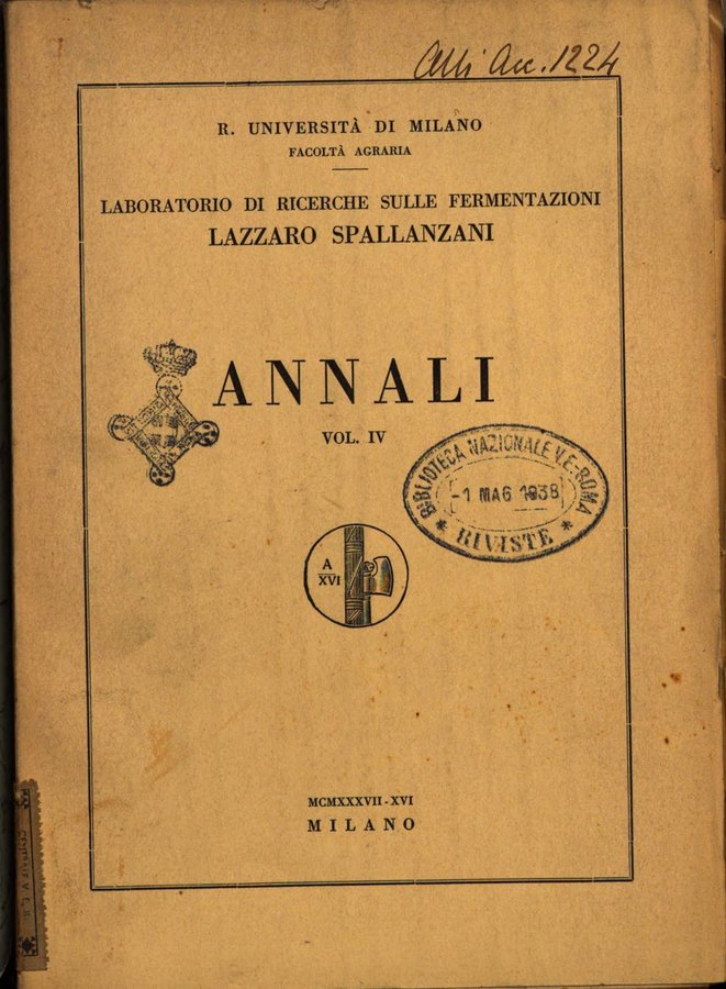 Annali del Laboratorio di ricerche sulle fermentazioni "Lazzaro Spallanza ni"