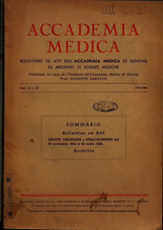 Accademia medica bollettino ed atti della Reale accademia medica di Genova ed archivio di scienze mediche