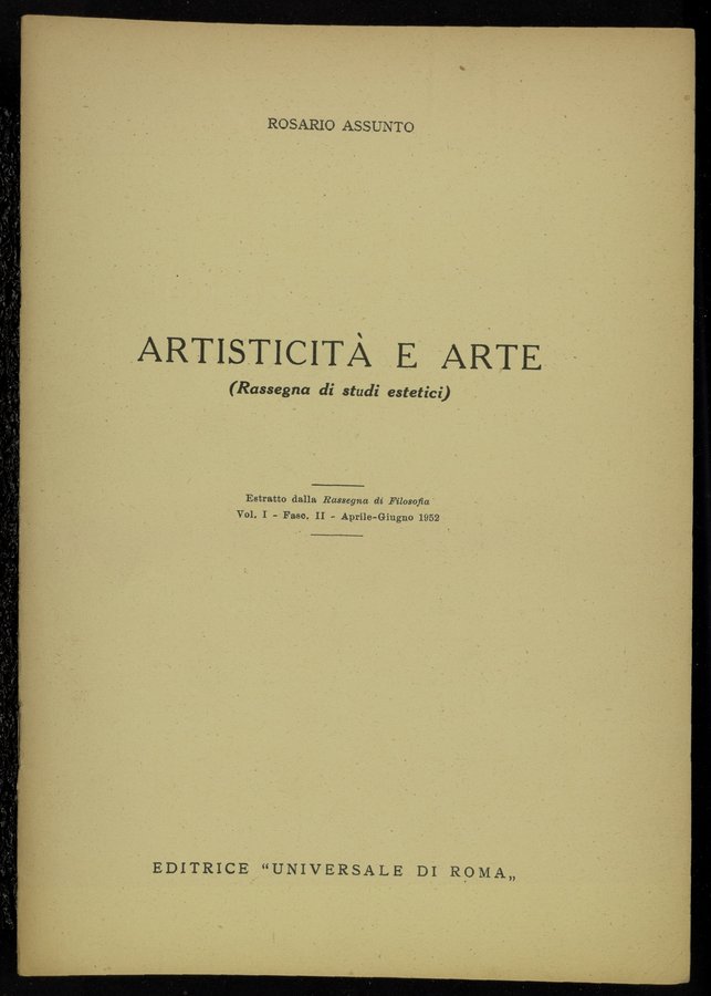 Artisticita e arte : rassegna di studi estetici / Rosario Assunto