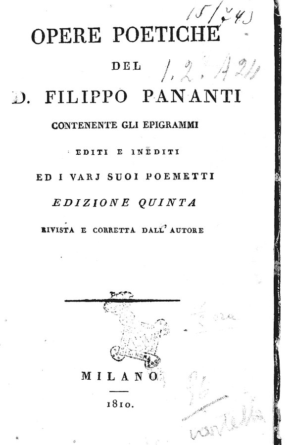Opere poetiche del D. Filippo Pananti contenente gli epigrammi editi e inediti ed i varj suoi poemetti
