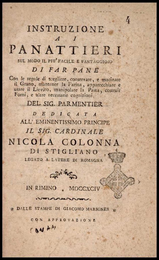 Instruzione a i panattieri di citta' e di campagna sul modo il piu' facile e vantaggioso di far pane ...