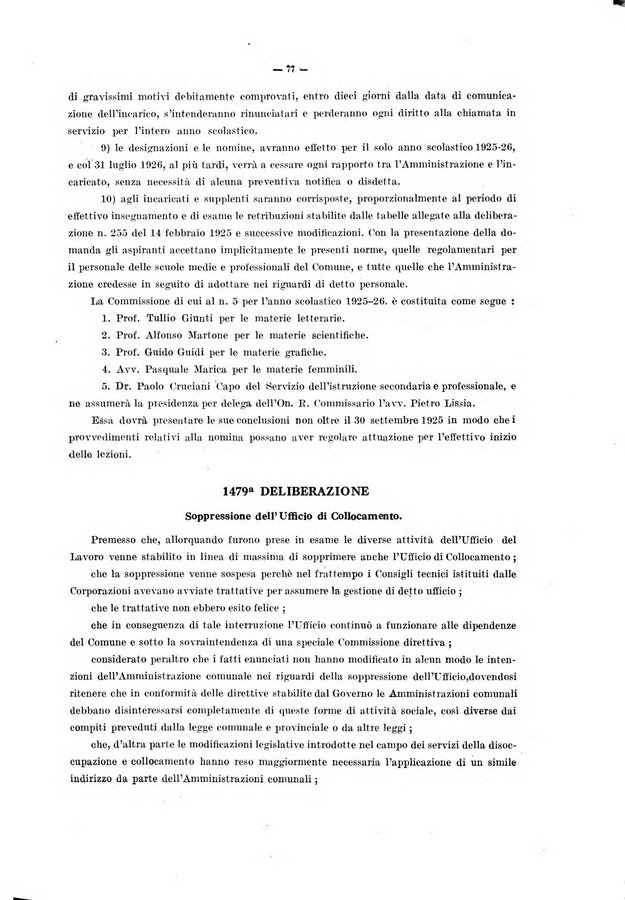 Deliberazioni del Regio Commissario