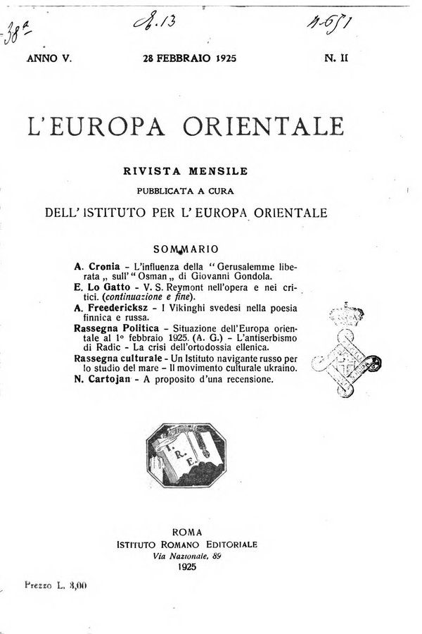 - L'Europa orientale rivista mensile