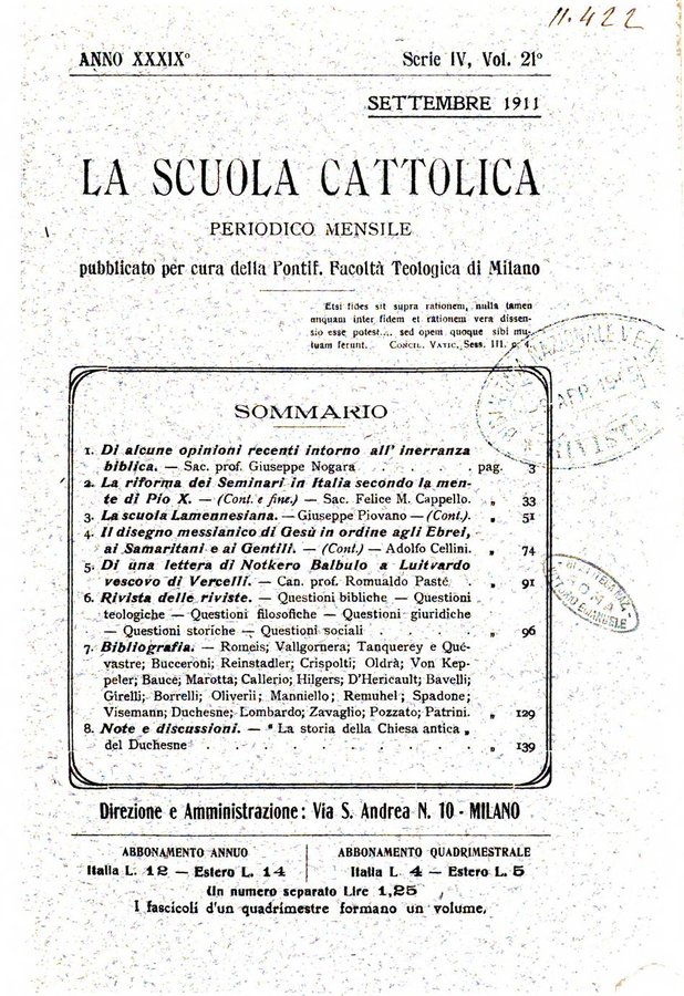 La scuola cattolica periodico religioso scientifico letterario