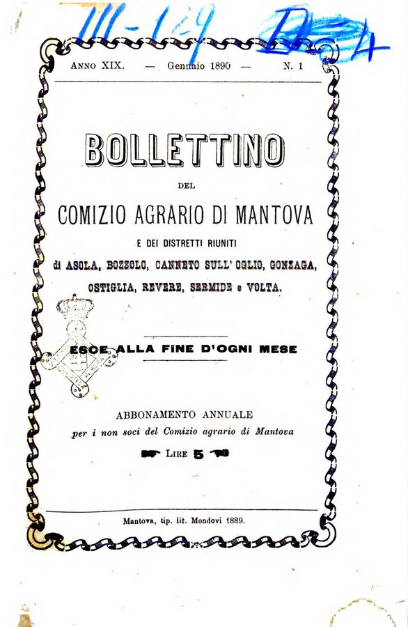 - Bollettino del comizio agrario di Mantova e dei distretti riuniti di Asola, Bozzolo, Canneto sull'Oglio, Gonzaga, Ostiglia, Volta