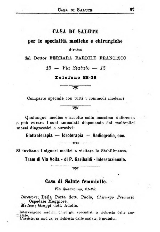 - Milano sanitaria elenco generale dei sanitari esercenti in Milano e provincia