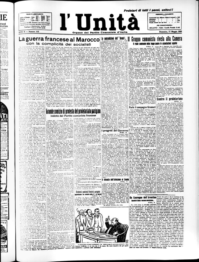 - Quotidiano: Annuale dal 2018 - Il sottotitolo varia: giornale dei lavoratori (1927); organo del Partito comunista d'Italia (1928-1943); organo centrale del Partito comunista italiano (1943-3 febbraio 1991); giornale fondato da Antonio Gramsci nel 1924 (4 febbraio 1991-1 agosto 2014); fondato da Antonio Gramsci nel 1924 (30 giugno 2015-)