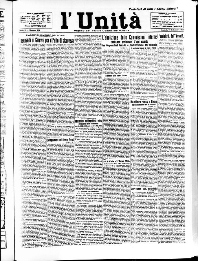 - L'Unità : quotidiano degli operai e dei contadini