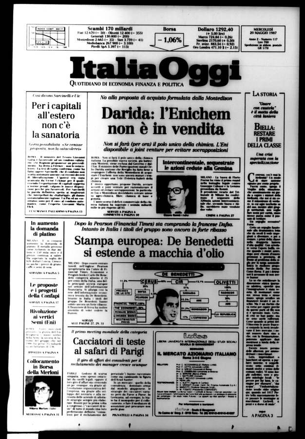 - Quotidiano - Precede numero 0 (18 nov. 1986) - Il sottotit. varia in: Quotidiano economico, finanziario e politico Editore e luogo variano