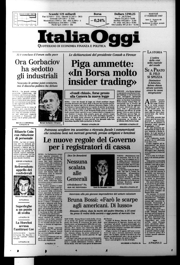 - Quotidiano - Precede numero 0 (18 nov. 1986) - Il sottotit. varia in: Quotidiano economico, finanziario e politico Editore e luogo variano