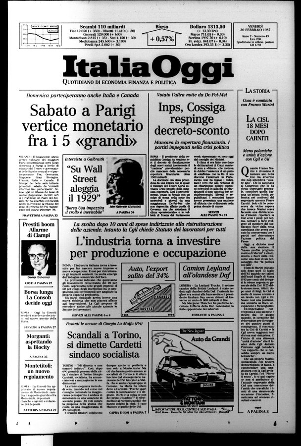 - Quotidiano - Precede numero 0 (18 nov. 1986) - Il sottotit. varia in: Quotidiano economico, finanziario e politico Editore e luogo variano