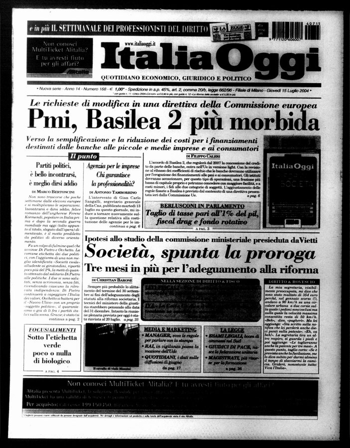 - Italia oggi : quotidiano di economia finanza e politica