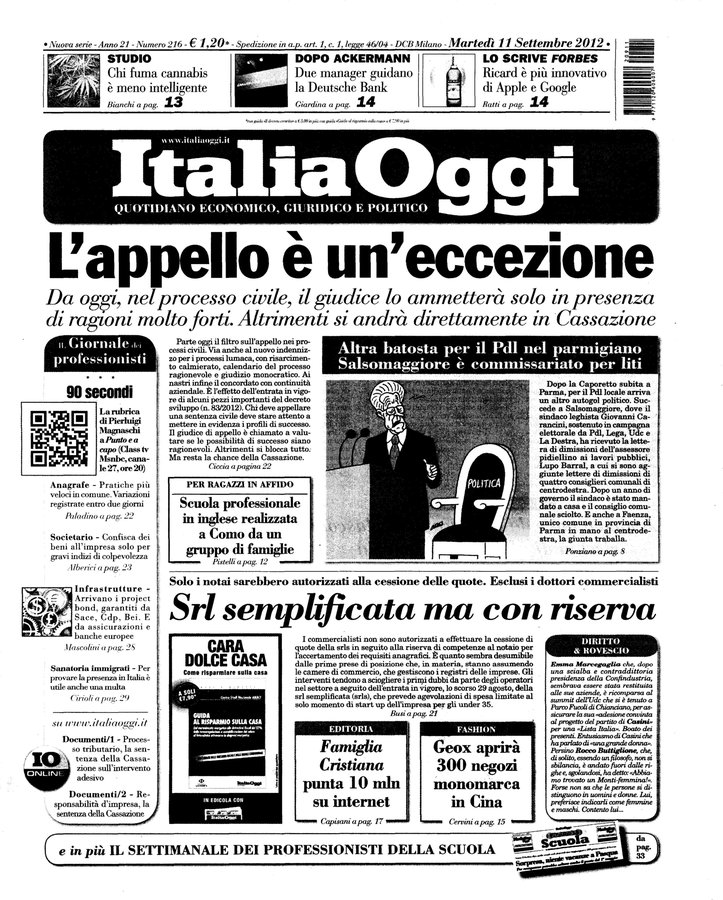 Italia oggi : quotidiano di economia finanza e politica