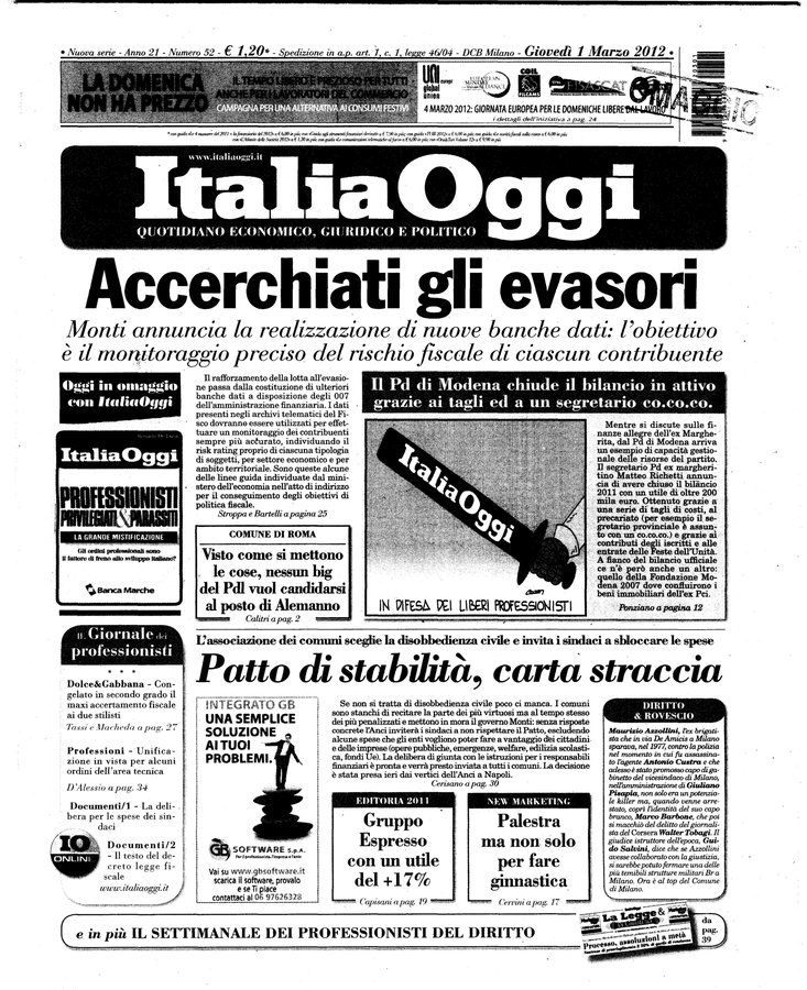 - Italia oggi : quotidiano di economia finanza e politica