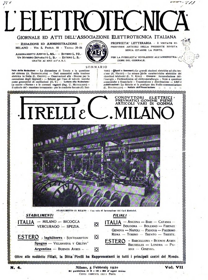 - L'elettrotecnica giornale ed atti della Associazione elettrotecnica ed elettronica italiana