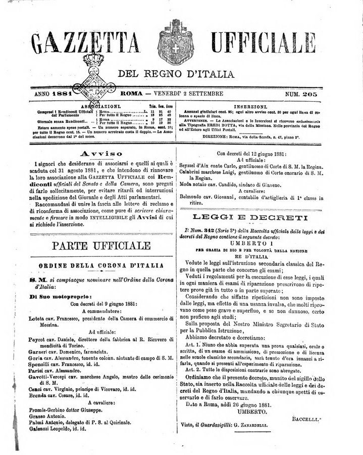 Gazzetta ufficiale della Repubblica italiana. Parte prima.