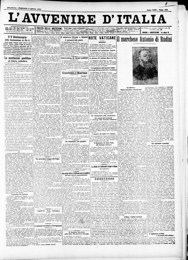 - Quotidiano - Continuazione di: L'avvenire : giornale quotidiano delle Romagne e dell'Emilia - Continua con: Avvenire