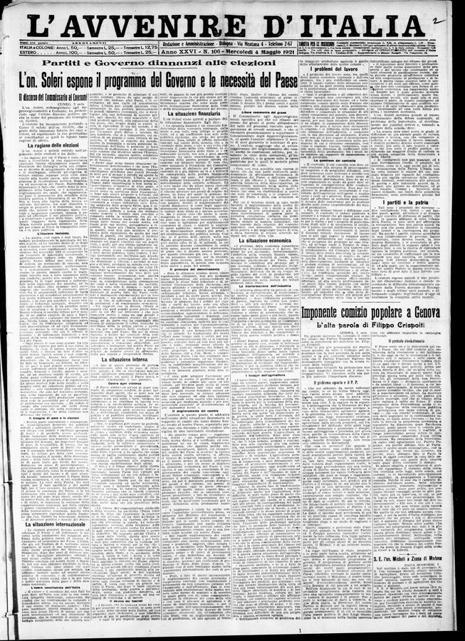 - Quotidiano - Continuazione di: L'avvenire : giornale quotidiano delle Romagne e dell'Emilia - Continua con: Avvenire