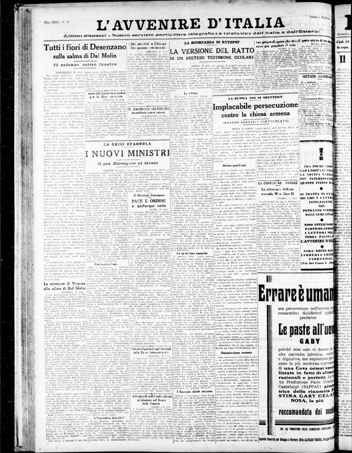 - Quotidiano - Continuazione di: L'avvenire : giornale quotidiano delle Romagne e dell'Emilia - Continua con: Avvenire