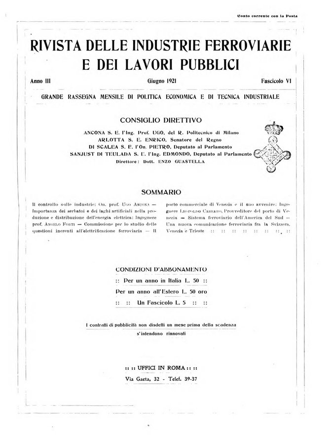 Rivista delle industrie ferroviarie e dei lavori pubblici grande rassegna di politica economica e di tecnica industriale