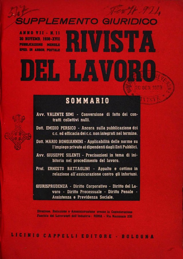 - Supplemento giuridico della rivista del lavoro rassegna critica di giurisprudenza