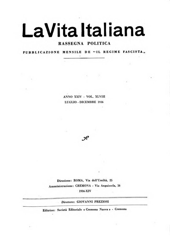 - Vita italiana rassegna mensile di politica interna, estera, coloniale e di emigrazione