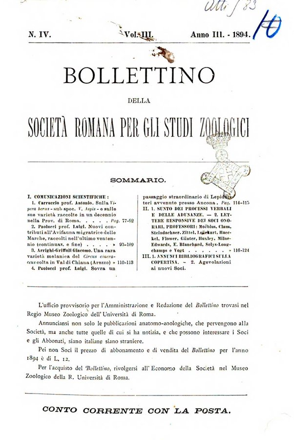 - Bollettino della Società romana per gli studi zoologici