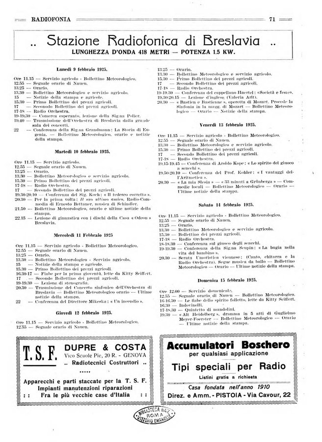 - Radiofonia rivista quindicinale di radioelettricità