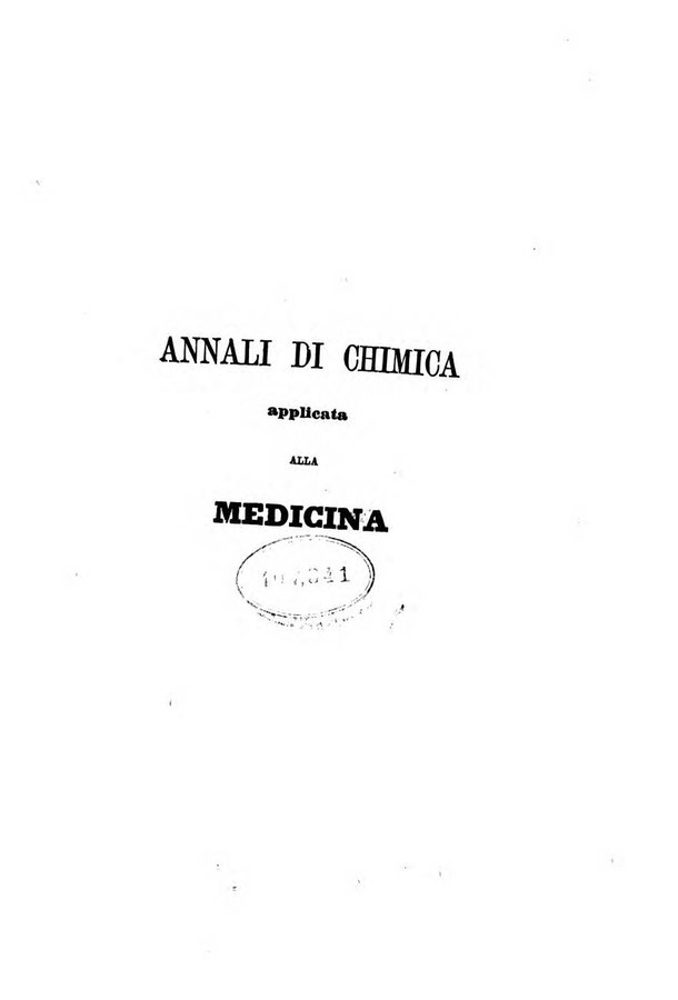 - Annali di chimica applicata alla medicina cioè alla farmacia, alla tossicologia, all'igiene, alla fisiologia, alla patologia e alla terapeutica. Serie 3