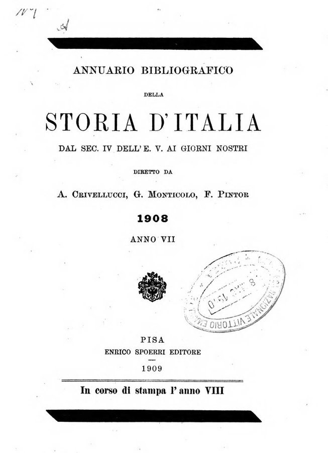- Annuario bibliografico della storia d'Italia dal sec. 4. dell'era volgare ai giorni nostri