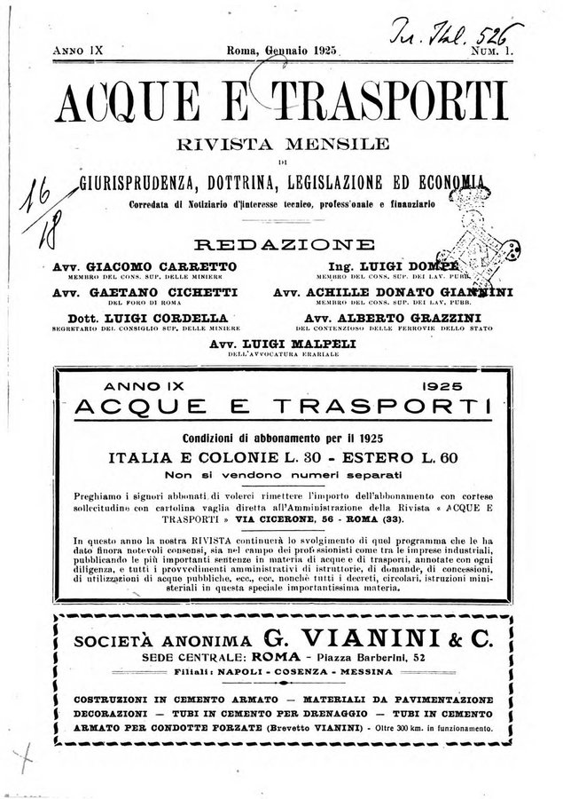 - Acque e trasporti rivista mensile di giurisprudenza, dottrina, legislazione ed economia