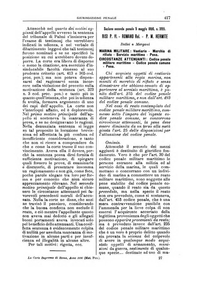 La Corte suprema di Roma raccolta periodica delle sentenze della Corte di cassazione di Roma