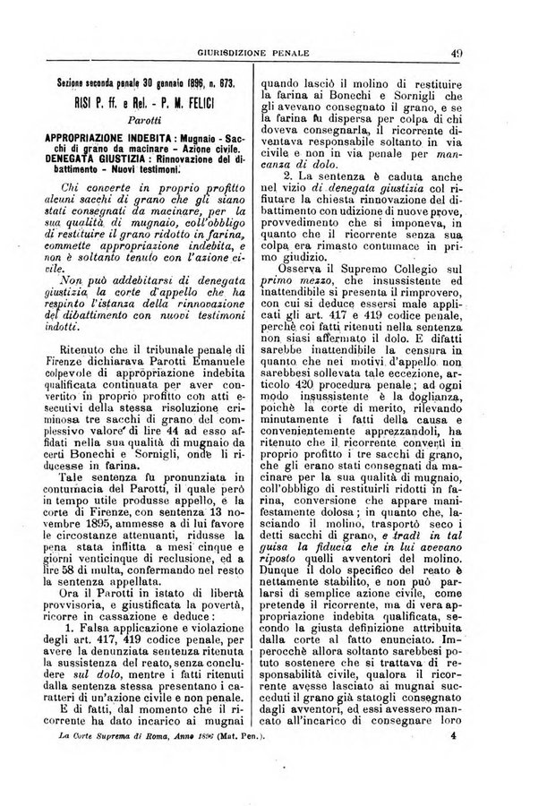 - La Corte suprema di Roma raccolta periodica delle sentenze della Corte di cassazione di Roma