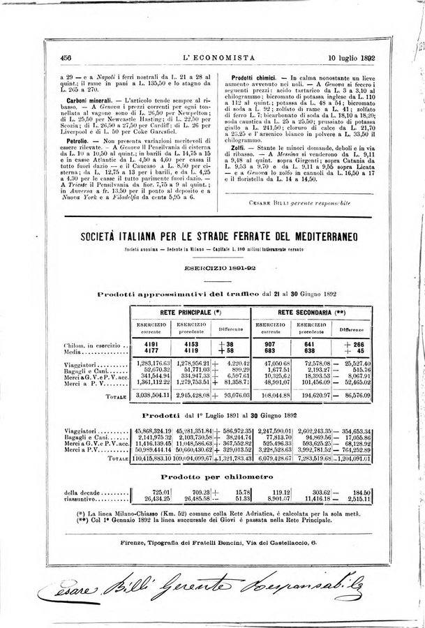 - L'economista gazzetta settimanale di scienza economica, finanza, commercio, banchi, ferrovie e degli interessi privati