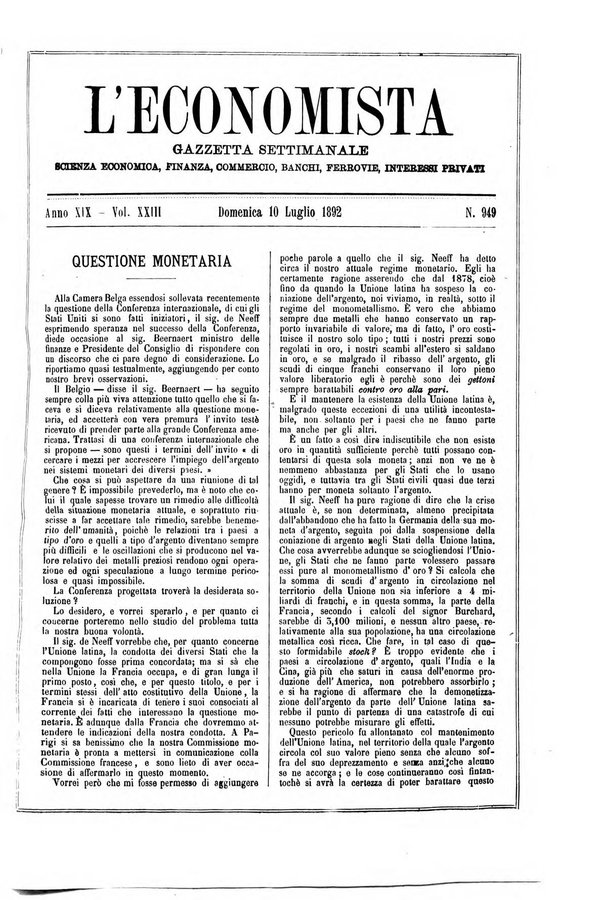 L'economista gazzetta settimanale di scienza economica, finanza, commercio, banchi, ferrovie e degli interessi privati