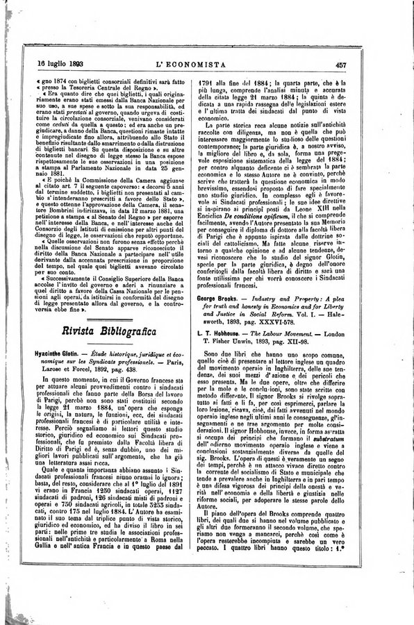 - L'economista gazzetta settimanale di scienza economica, finanza, commercio, banchi, ferrovie e degli interessi privati