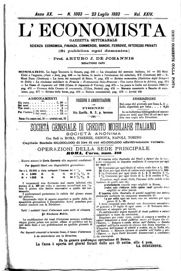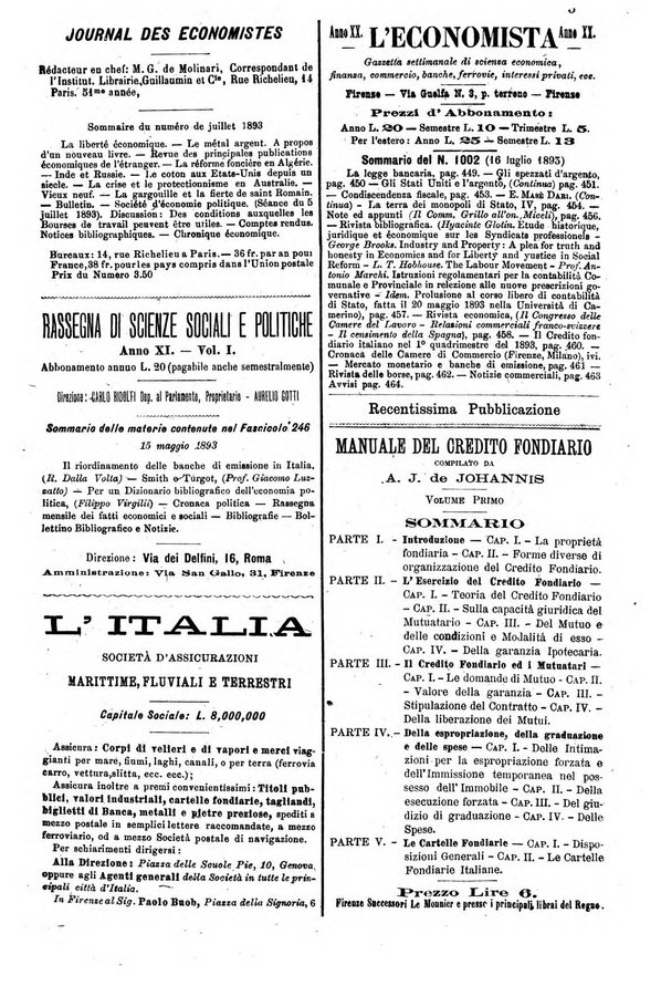 L'economista gazzetta settimanale di scienza economica, finanza, commercio, banchi, ferrovie e degli interessi privati