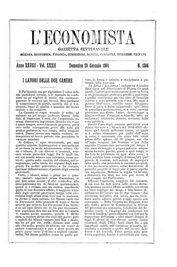 L'economista gazzetta settimanale di scienza economica, finanza, commercio, banchi, ferrovie e degli interessi privati