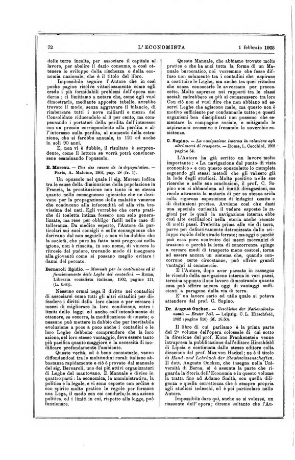 - L'economista gazzetta settimanale di scienza economica, finanza, commercio, banchi, ferrovie e degli interessi privati