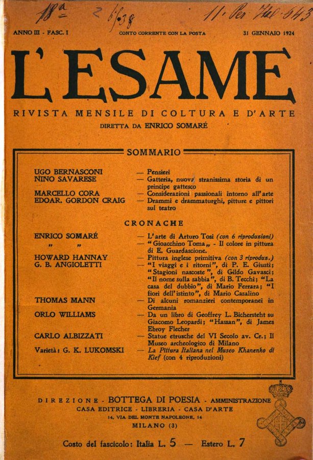 - L'esame rivista mensile di coltura e d'arte