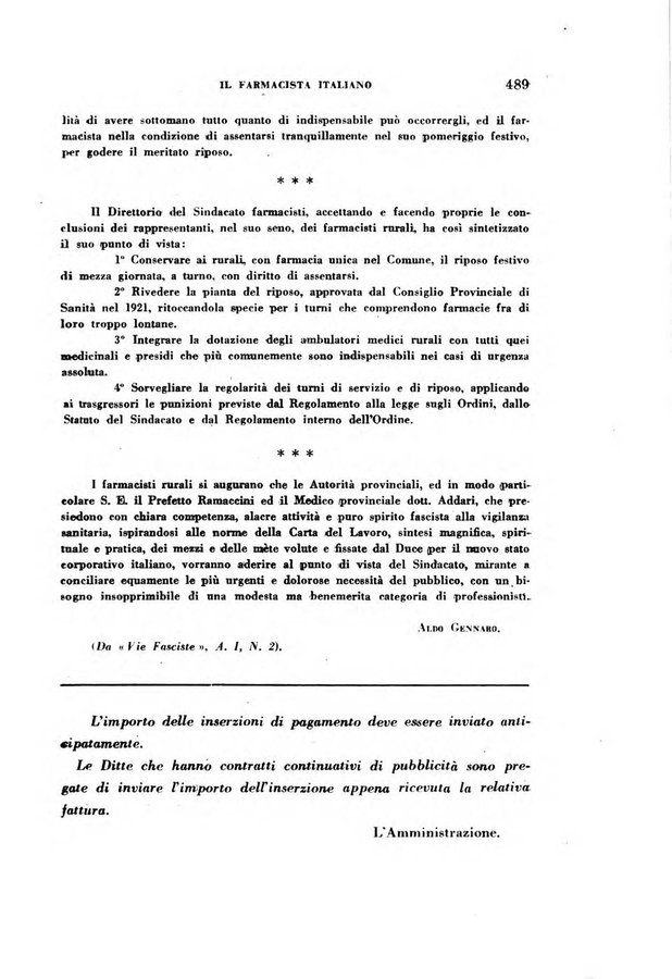 - Il farmacista italiano bollettino ufficiale mensile del Sindacato nazionale fascista dei farmacisti