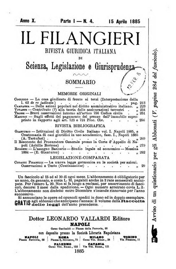 - Il Filangieri rivista periodica mensuale di scienze giuridiche e politico-amministrative