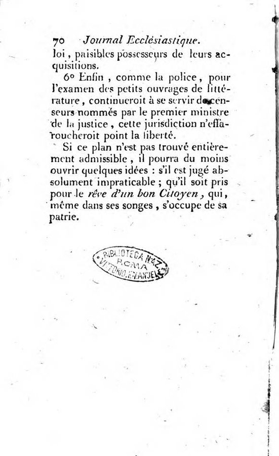 - Journal ecclesiastique ou bibliotheque raisonnée des sciences ecclésiastiques