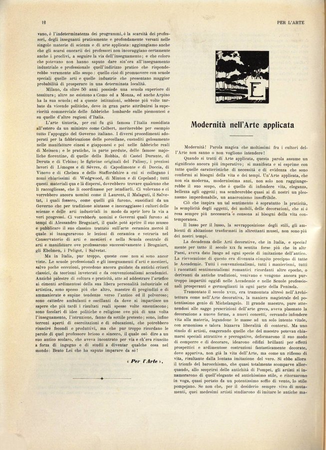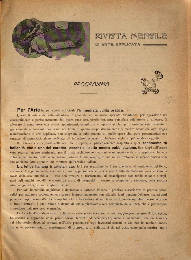 - Per l'arte : rivista mensile d'arte applicata