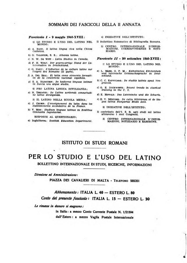 Per lo studio e l'uso del latino bollettino internazionale di studi, ricerche, informazioni