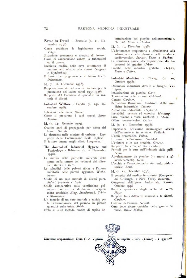 Rassegna di medicina industriale pubblicazione mensile dell'Ente nazionale di propaganda per la prevenzione infortuni