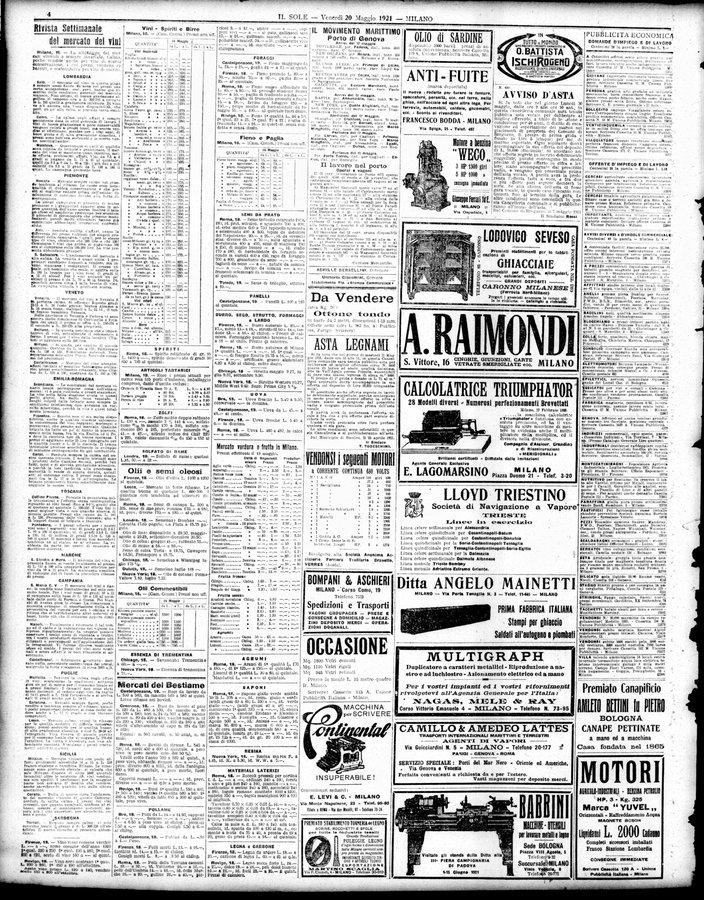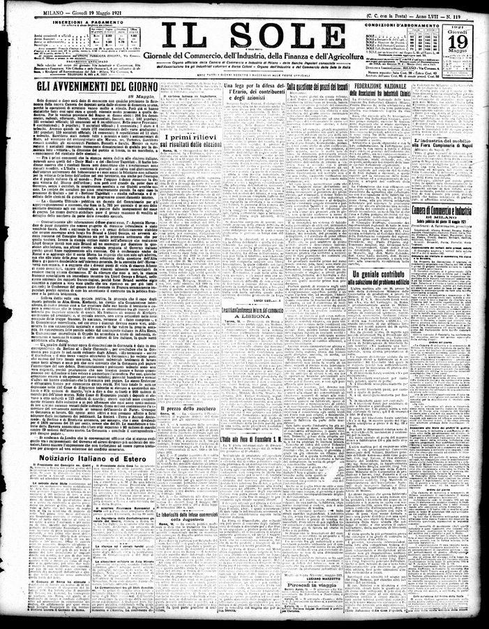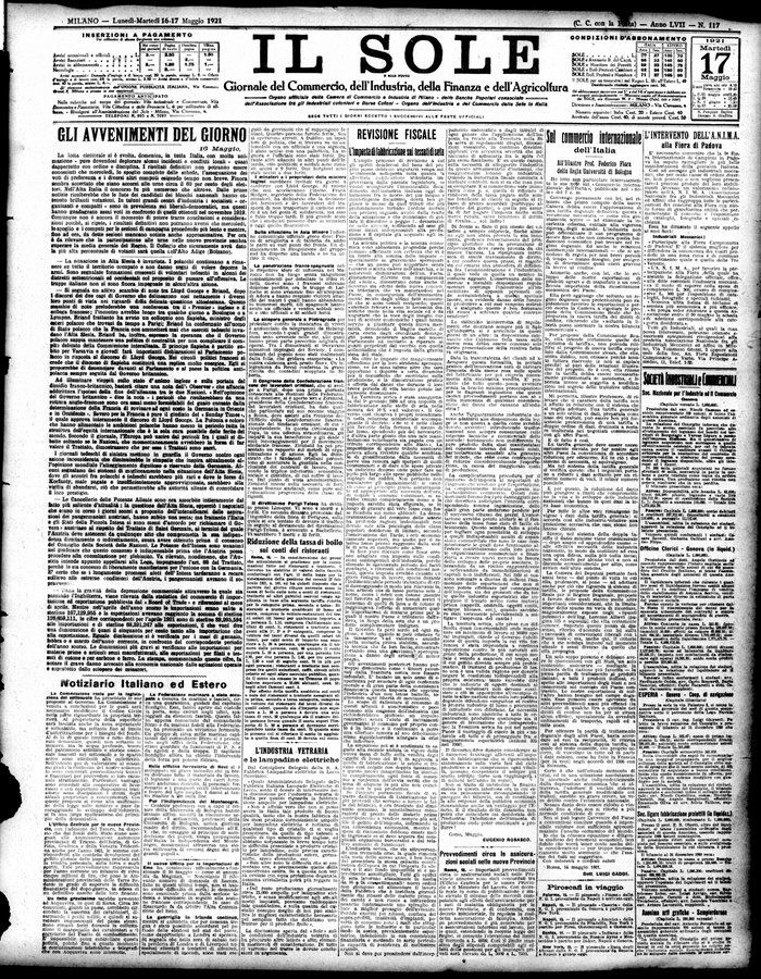 Il sole : giornale commerciale, agricolo, industriale... : organo ufficiale della Camera di commercio e industria di Milano ...