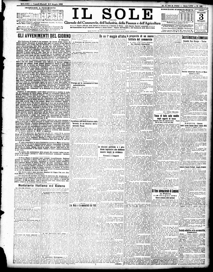 Il sole : giornale commerciale, agricolo, industriale... : organo ufficiale della Camera di commercio e industria di Milano ...