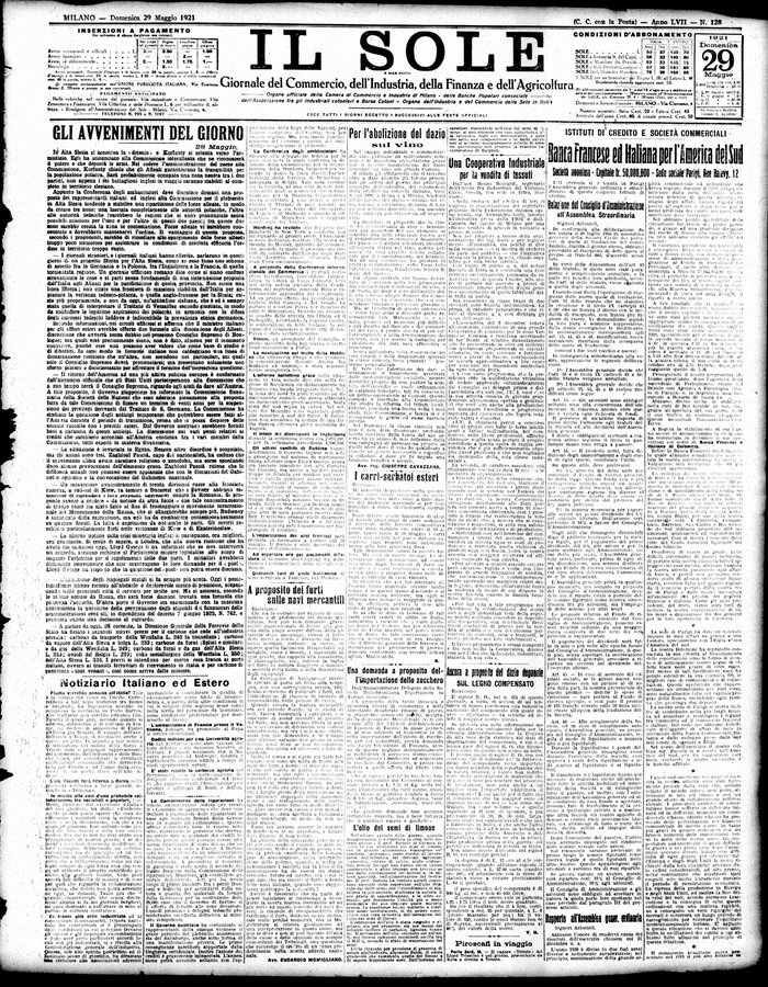 Il sole : giornale commerciale, agricolo, industriale... : organo ufficiale della Camera di commercio e industria di Milano ...